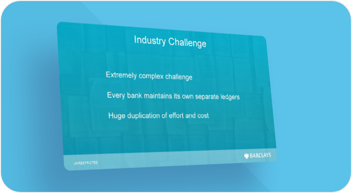 Industry Challenge Extremely complex challenge Every bank maintains its own separate ledgers Huge duplication of effort and cost UNRESTRICTED