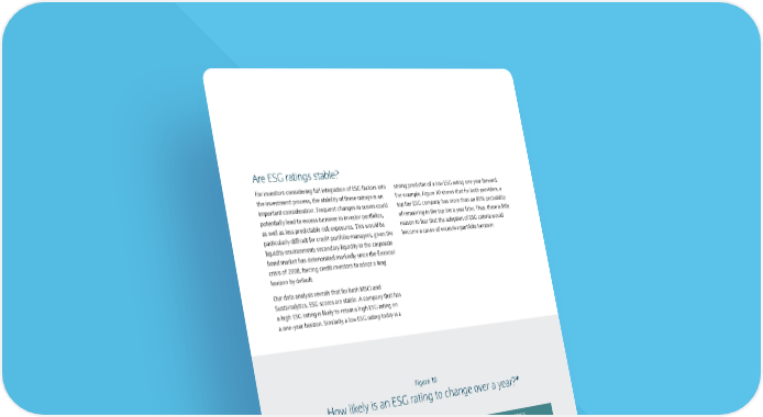 Are ESG ratings stable? For investors considering full integration of ESG factors into strong predictor of a low ESG rating one year forward. the investment process, the stability of these ratings is an For example, Figure 10 shows that for both providers, a important consideration. Frequent changes in scores could top tier ESG company has more than an 80% probability potentially lead to excess turnover in investor portfolios, of remaining in the top tier a year later. Thus, there is little as well as less predictable risk exposures. This would be reason to fear that the adoption of ESG criteria would particularly difficult for credit portfolio managers, given the become a cause of excessive portfolio turnover. liquidity environment; secondary liquidity in the corporate bond market has deteriorated markedly since the financial crisis of 2008, forcing credit investors to adopt a long horizon by default. Our data analysis reveals that for both MSCI and Sustainalytics, ESG scores are stable. A company that has a high ESG rating is likely to retain a high ESG rating on a one-year horizon. Similarly, a low ESG rating today is a Figure 10 How likely is an ESG rating to change over a year?* MSCI SUSTAINALYTICS at end of period at end of period Low Medium High Low Medium High Low 73% 24% 3% Low 84% 15% 1% at start of period Medium 22% 60% 18% Medium 13% 73% 15% High 2% 17% 81% High 0% 13% 87% Source: MSCI ESG Research; Sustainalytics; Barclays Research * Averaged over the period August 2009 to April 2016 26