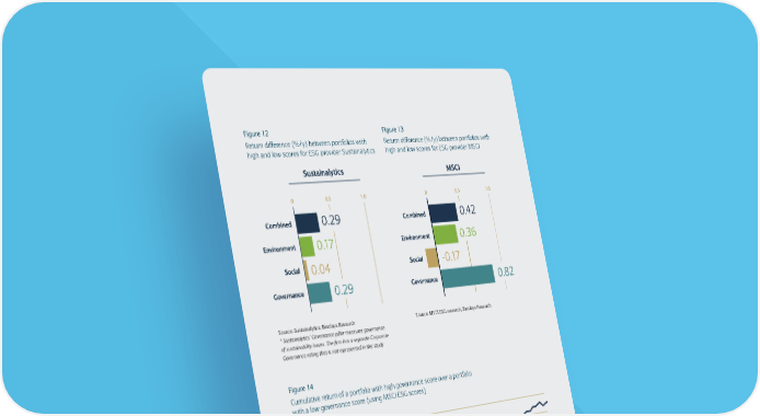 Figure 12 Figure 13 Return difference (%/y) between portfolios with Return difference (%/y) between portfolios with high and low scores for ESG provider Sustainalytics high and low scores for ESG provider MSCI Source: Sustainalytics; Barclays Research Source: MSCI ESG research, Barclays Research * Sustainalytics’ Governance pillar measures governance of sustainability issues. The firm has a separate Corporate Governance rating that is not represented in this study Figure 14 Cumulative return of a portfolio with high governance score over a portfolio with a low governance score (using MSCI ESG scores) 6.0 5.0 4.0 3.0 2.0 1.0 0.0 Jul-09 Jul-10 Jul-11 Jul-12 Jul-13 Jul-14 Jul-15 Source: MSCI; Barclays Research 31